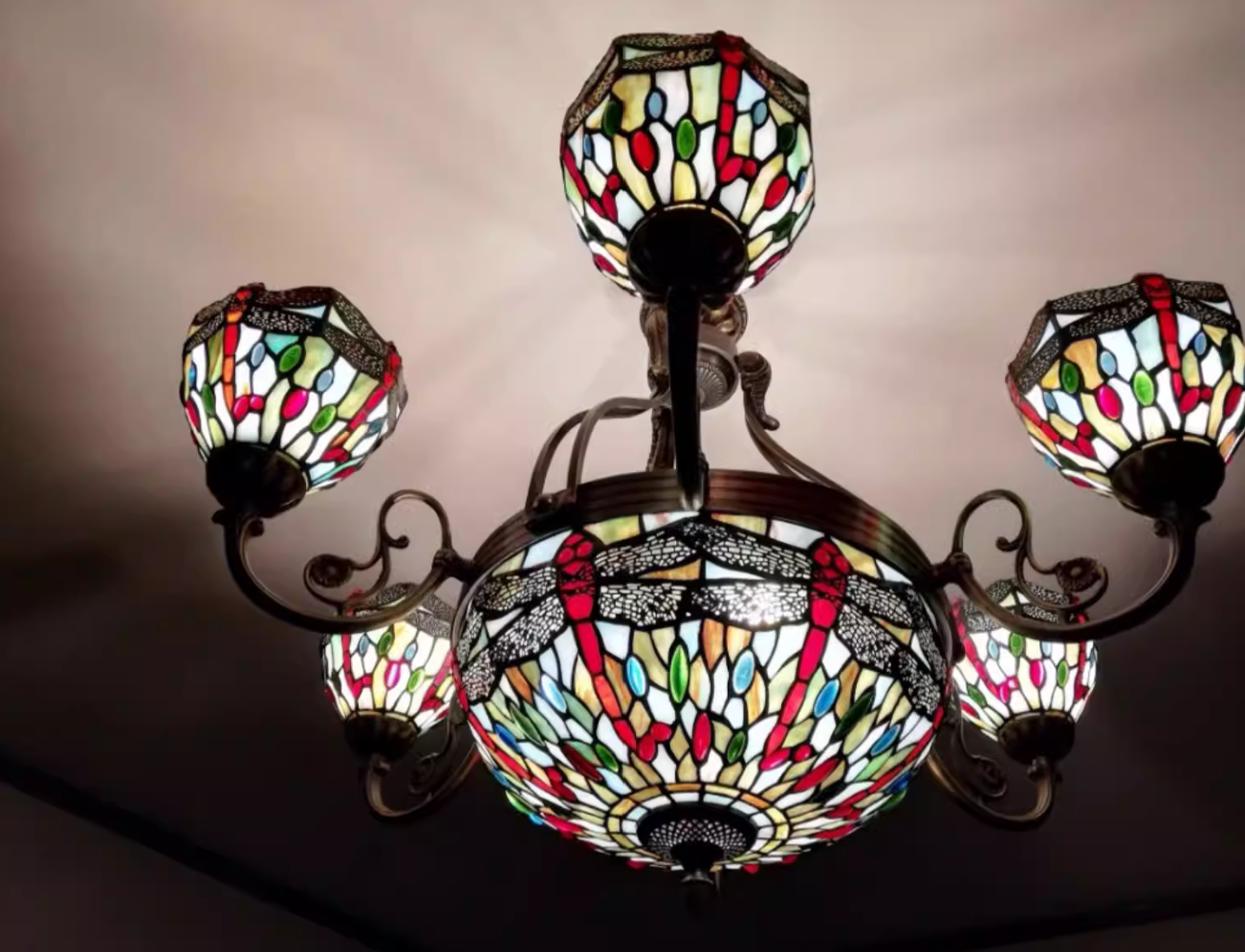– Chất liệu: Khung kim loại sơn mạ tĩnh điện, kính màu làm thủ công.